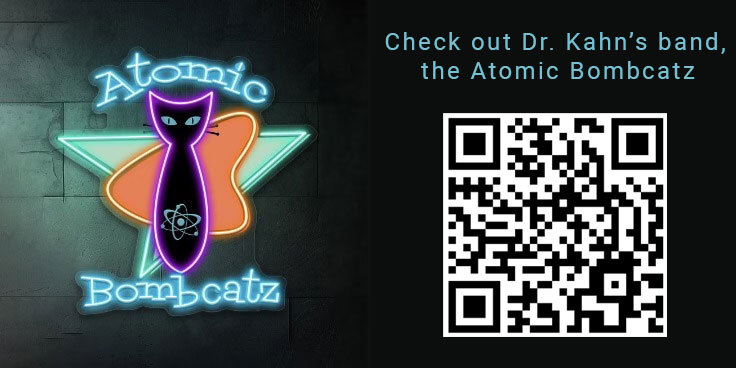 Outside of the office, Dr. Kahn enjoys spending quality time with his family, pursuing photography, and performing music with his band, the Atomic Bombcatz.